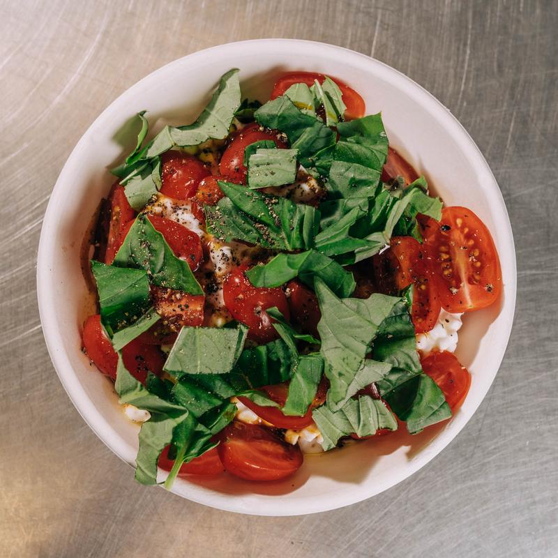 Cottage Cheese, Heirloom Tomatoes, Fresh Basil, Olive Oil, Molasses, Salt and Pepper